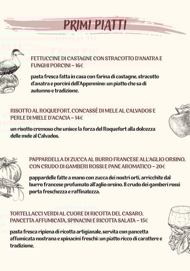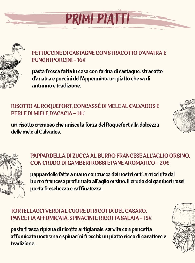 Scopri il nostro menù, ricco di piatti tradizionali preparati con ingredienti locali.